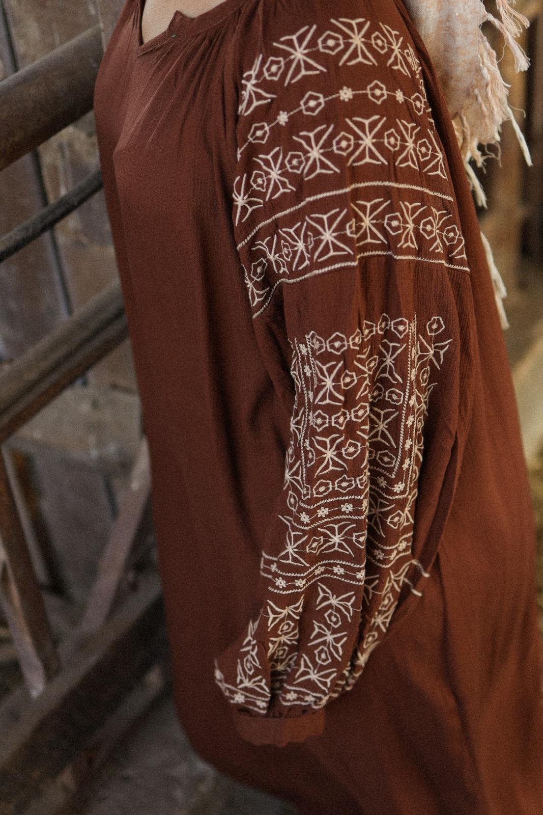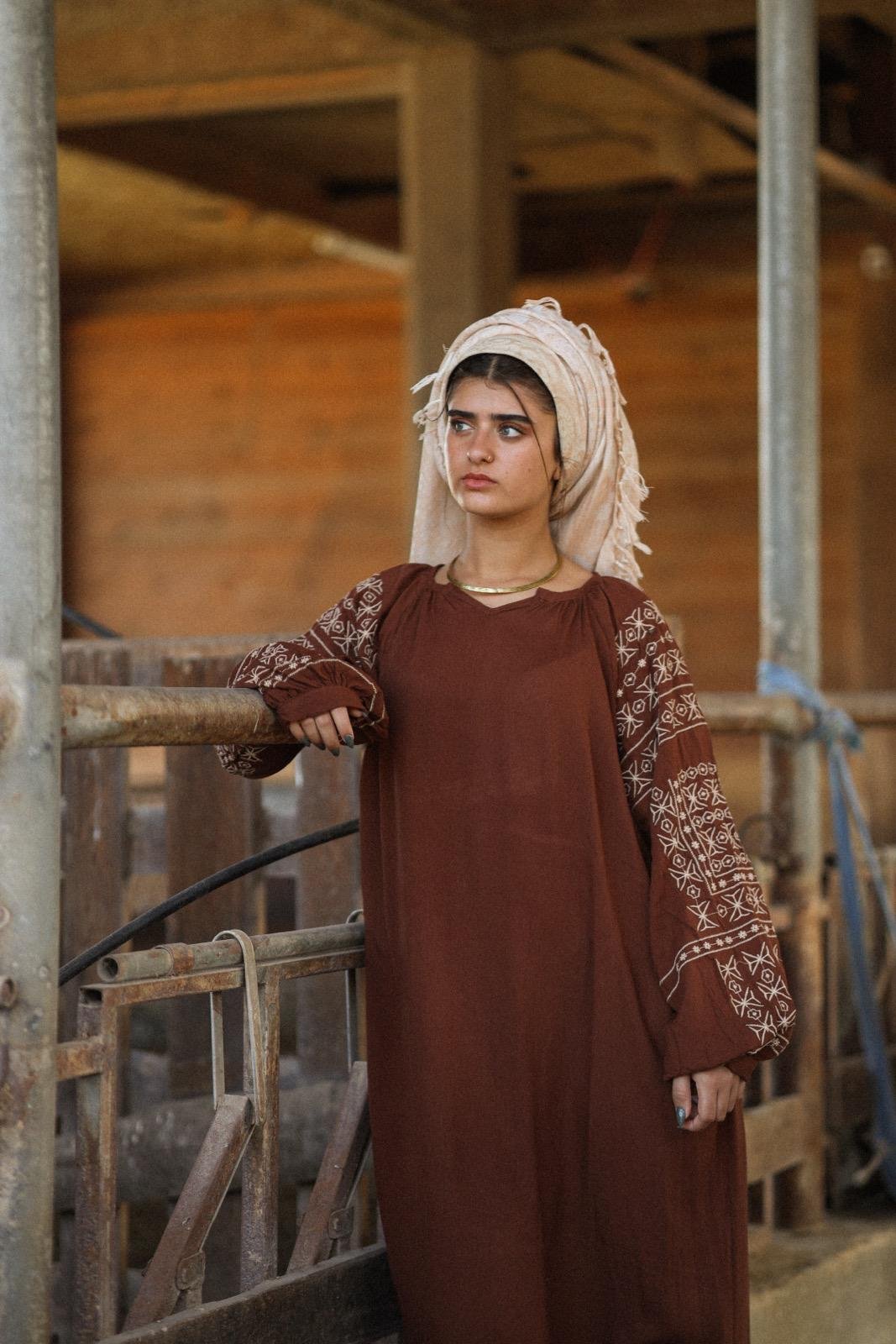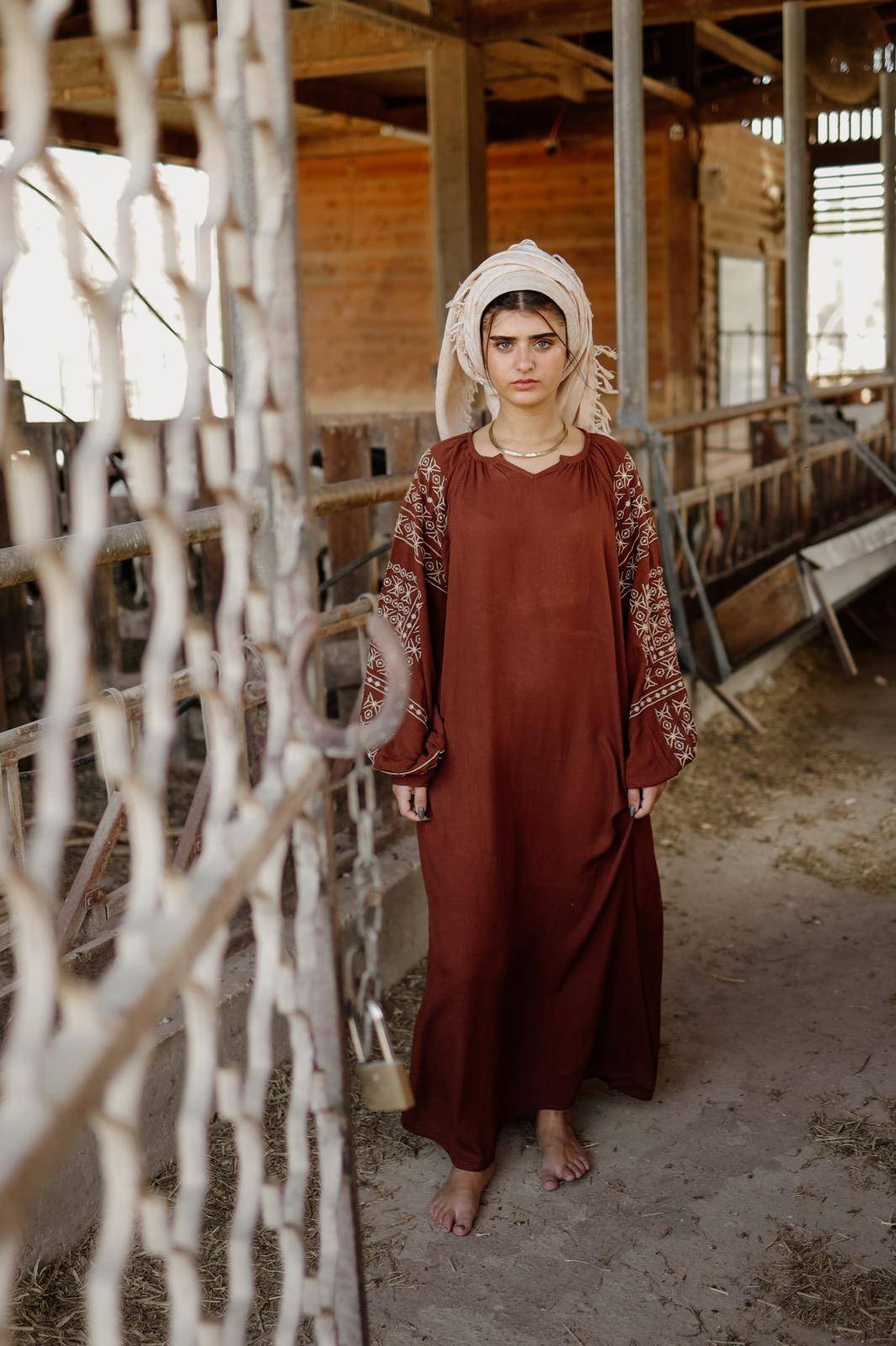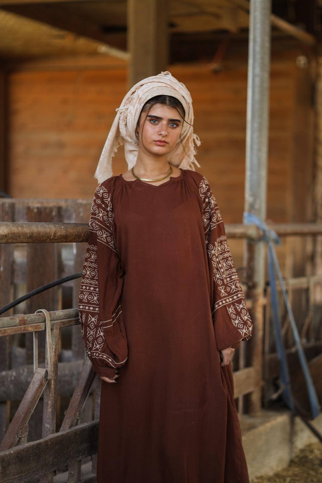 כך גם הגלביה רחבה ונעימה בד ויסקוזה רך שנע עם הגוף ורקמה משגעת בשרוול.