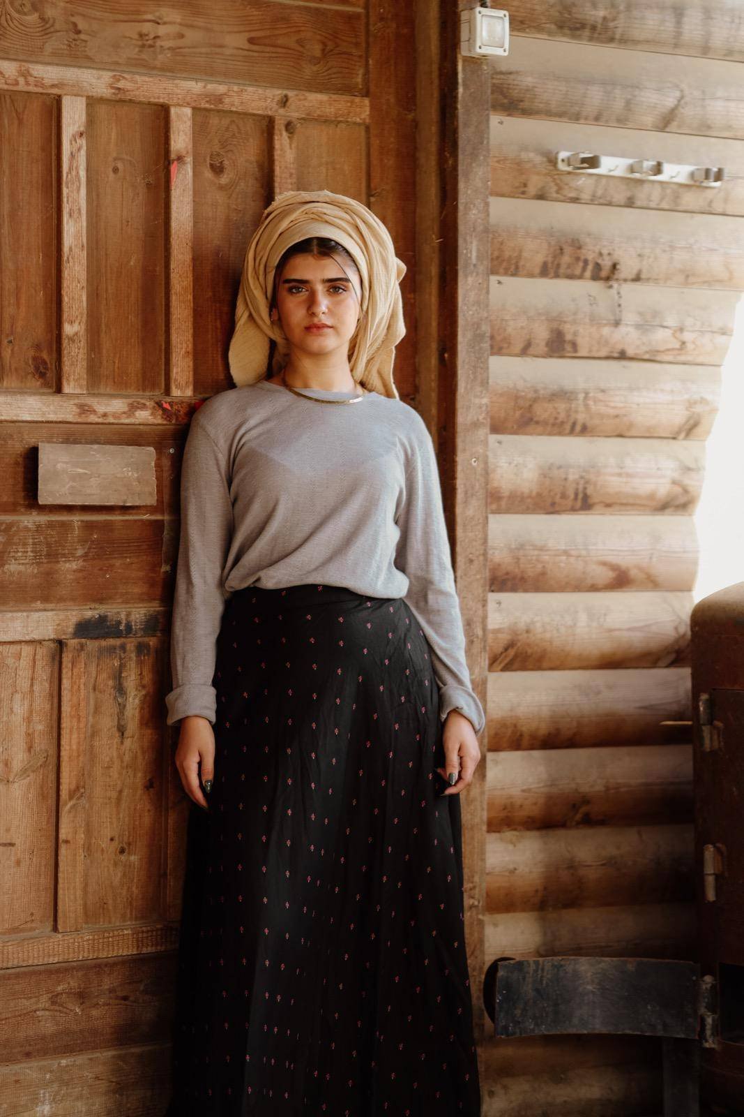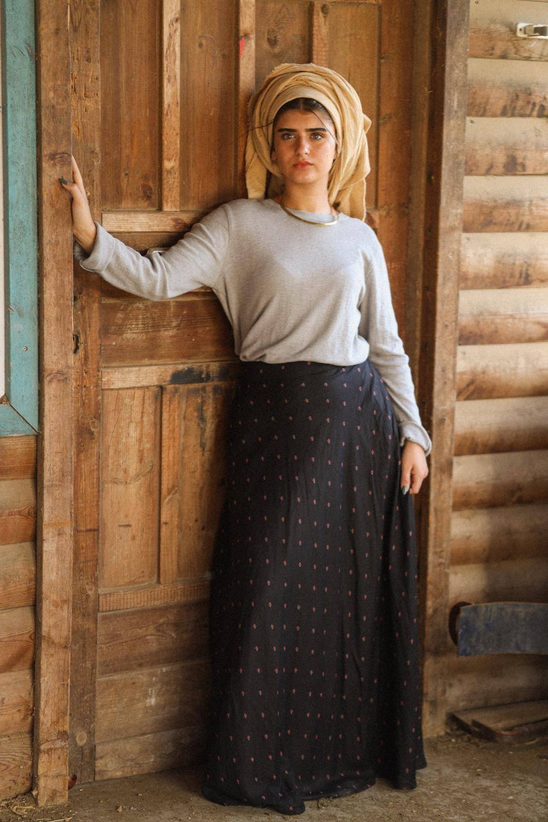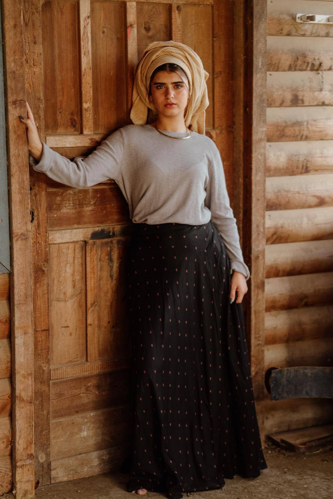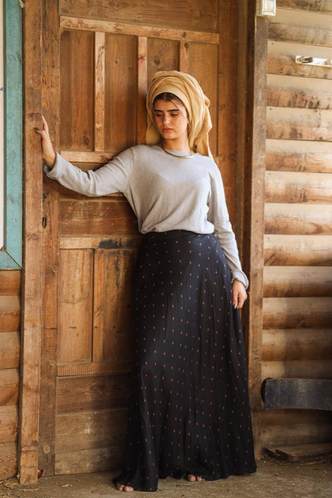 הגובה של הדוגמנית 1.59 ס״מ,לובשת מידה m